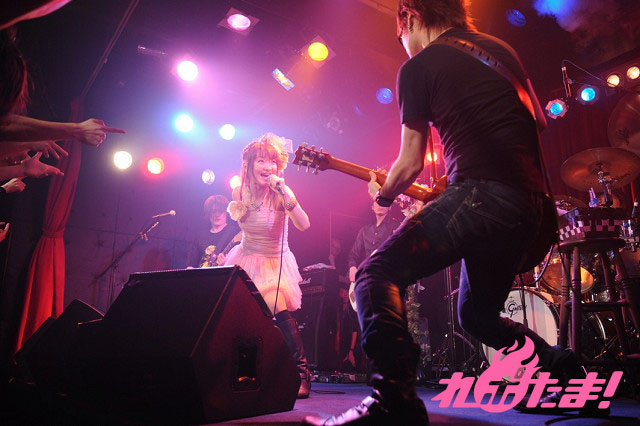 続く「Rock’n Life」ではスリリングにギターソロが滑り込んだりと、熱いロックサウンドが展開し、最初からクライマックスを迎えたかのような激しいモッシュが巻き起こった。初めて生で歌うとい「Refrain moon」では、落サビの部分を観客と一緒にシンガロング。ずっとライブで歌いたかった曲というだけあって、AiRIの表情にも一層の熱量が帯びた。