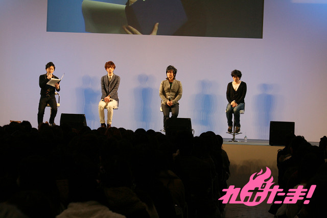 当日はアラン・ライトニー役の菅沼久義さんが司会の下、アセム・アスノ役の江口拓也さん、オブライト・ローレイン役の遊佐浩二さん、そしてマックス・ハートウェイ役の阪口大助さんが登壇。アフレコの裏話などを語ってくれた。