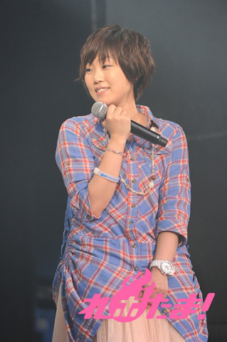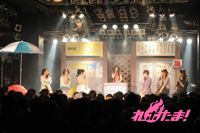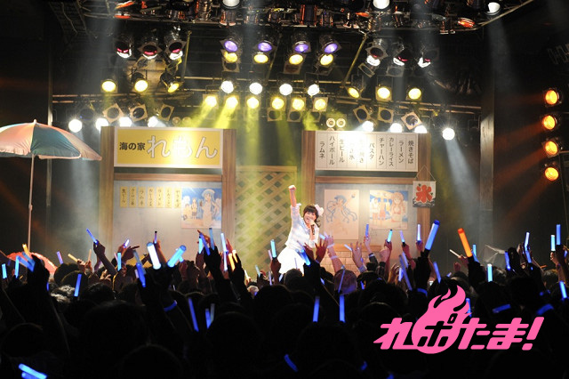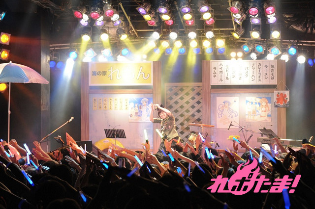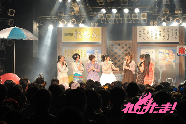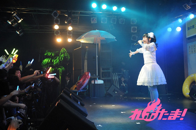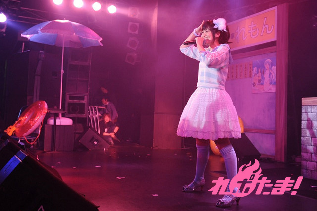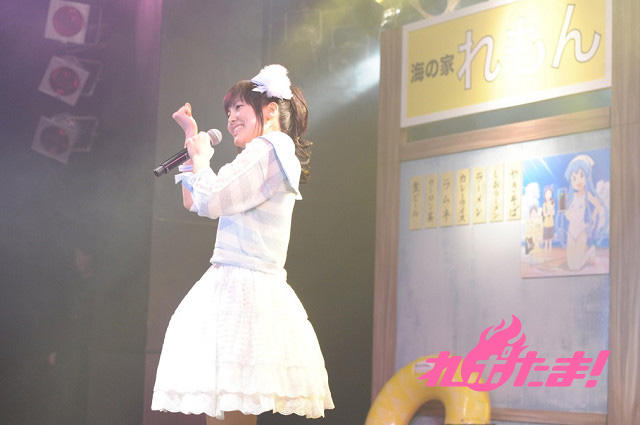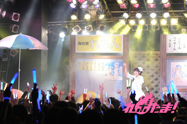 まずは金元によるイカ娘ライブからイベントはスタート。作品中に登場する「海の家れもん」を模したステージセットをバックに、大勢のファンからの歓声を浴びながら「ほっぴん☆すてっぴん☆しゅりんぴん」「いイカ☆いイカは☆イイでゲソ!」「イ・カ・ア・イ・ス 食 べ な イ カ?」を元気よく歌い上げた。