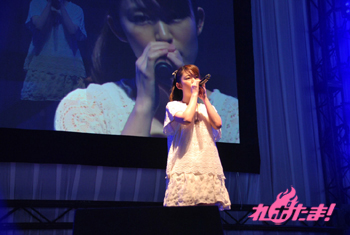 まず『モーレツ宇宙海賊』の映像が流れ、茉莉香の「海賊の始まりだ」のセリフ共に、小松さんが現れてミニライブ。同作のイメージソングであり、小松さんのデビュー曲となった「Black Holy」を4月11日のリリースに先駆けて披露した。人前で歌うのは2回目のため「超緊張しました」と熱唱後、汗をぬぐいながら笑顔で話した。