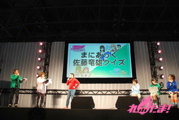 両作品でチームに分かれて、佐藤監督にちなんだ難問に挑戦する“まにあっく佐藤竜雄クイズ”。1問目は「『ラグランジェ』の収録後にみんなで食事する時、締めで頼むものは?」で、『ラグランジェ』チームが絶対有利なはずも、二人は年齢的に最後までいられないため、知らないらしい。小松さんが「ギョーザの皮」、石原さん&瀬戸さんが「焼きおにぎり」だったが答えは「黒ごま担担麺」。マニアック過ぎる! 2問目の「監督が高校時代、陸上部でやっていた競技は100メートル走と何?」は小松さんが「砲丸投げ」と正解して勝利! 勝利チーム(と言っても小松さん一人だが)は監督からの好印象を獲得。何かいいことあるのかな?