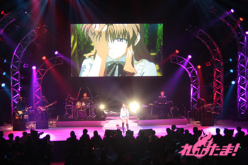 続いては、川田まみさんが登場。イメージソング「tiny days」とEDテーマ曲「空の森で」を歌い上げてくれた。