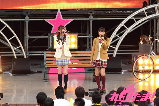 ユニットコーナーでは、それぞれ4組のチームが曲を披露。クールビューティー系の「シェルターなんかいらない」チーム(渡邉ひかる、荒井玲良、田中美麗、後藤彩)からは、最終日らしく「ピンヒールで初めてダンスをしたんですけど、初めは踊れなくて歌も全然ダメって言われて、4人で泣いて泣いて悔しい思いをしました」という苦労話が。また女の子同士の友情を歌った「夕焼け空に、また明日。」のみやりーぬコンビ(八坂沙織、宮﨑理奈)からは「バックのモニターに夕焼け空を流してもらったけど、私達が見ている方向は青空だったのでどうしようと思った」というぶっちゃけトークも飛び出した。