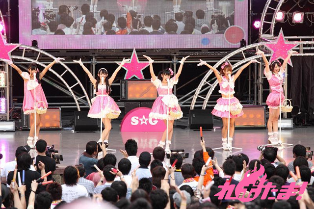 4月4日(水)の渋谷を皮切りに、名古屋、大阪を回った今回のツアー。千秋楽を見るために野音に集まったファンの数は、単独ライブ史上最多の3000人に及んだ。そんな中、OP曲「Welcome to ♥ S☆G Show!!Ⅱ」に乗って、スパガが颯爽と登場。「ウォッオッオー!」のかけ声で始まるヒット曲「女子力←パラダイス」、タオル回しで大盛り上りの「絶対自分前進宣言!」、1stシングルでもありキラー曲でもある「がんばって 青春」を立て続けに披露し、外の気温に負けないアツいスタートを切った。