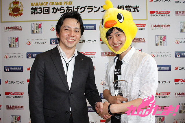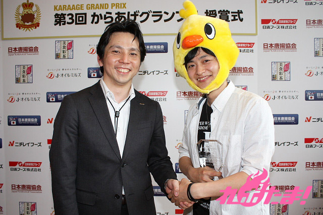 そんな僕が今回ベストカラアゲニストに選ばれたというわけで、いろいろと唐揚げに貢献することが出来てきたのかなと嬉しい限りです。ありがとうございます。これからも唐揚げをもっともっと世界中に普及していけるよう頑張っていきたいと思います」と喜びの言葉を語ってくれた。