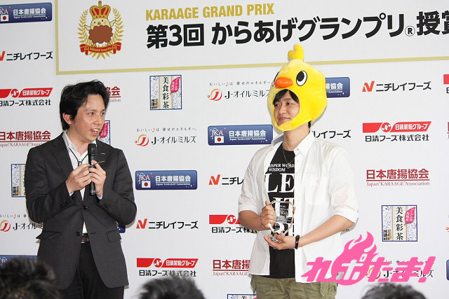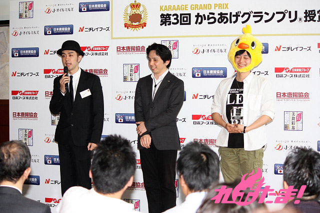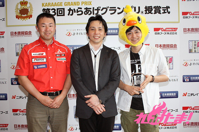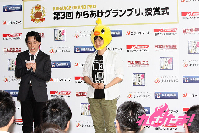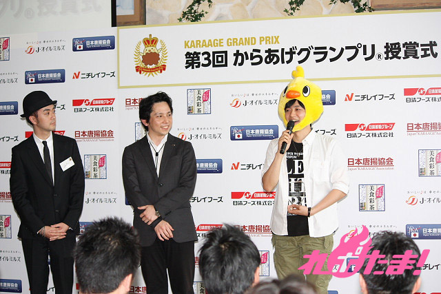 日本唐揚協会の主催による全国の唐揚げ店人気投票企画『第3回からあげグランプリ』の授賞式が4月25日(水)に東京・原宿でおこなわれ、下野紘さんが2012年度の『ベストカラアゲニスト』に選出された。