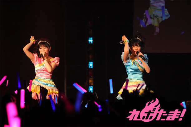 3曲目で「圧倒的な GO!!」というスピード感ある楽曲を、息のあったダンスで見せれば、「未来形アイドル」では2人はステージサイドの張り出しに立って客席を煽った。アッパーチューンの「VIVIVID PARTY!」では、2人のダンスがより引き立ち、会場を熱狂させていく。