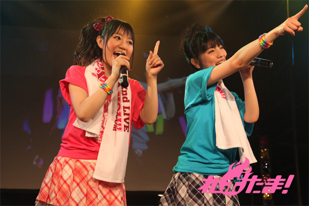 「Shooting☆Smile」で左右対称のキレキレダンスを見せると、唯ちゃんと夏織ちゃんは「昼の部より緊張が解けました」と微笑みながらファンに向けて挨拶。そして、今回のライブでは「君のYELL」のMVの裏ストーリーといったミニドラマ映像が合間で流れるので、自分たちの頑張った演技を見て欲しいと話した。