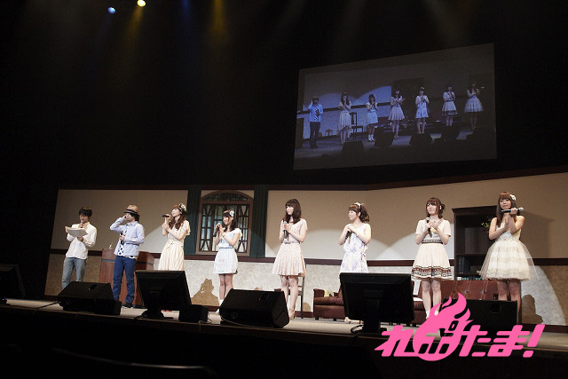 最後にキャストからイベントの感想と集まったファンへの感謝の気持ちが送られて、幕が下りてイベントは終了……と思われたが、「まだあんなにたくさんエア友達が残っている!」と影ナレが入る。「最後はやっぱり歌で締めましょう!」ということで、再び幕が上がり、場内は大興奮!