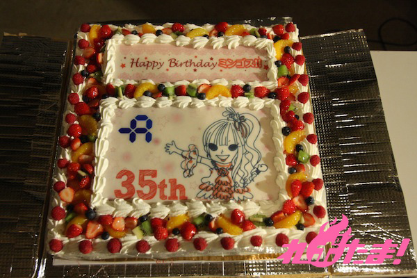 続けて「COLOR SANCTUARY」に突入……するところで濱田Pと原さんがバースデーケーキを持って登場! ミンゴスの絵が書かれた特製ケーキをバックにファンと一緒に写真を撮影した。
