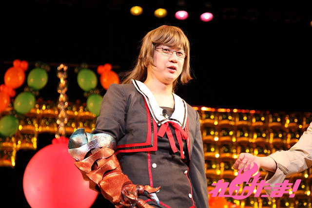 女装のクオリティに定評のある杉田さんは、自身がプロデュースした作品で使用されているという衣装で登場。生足が非常に美しいです。
