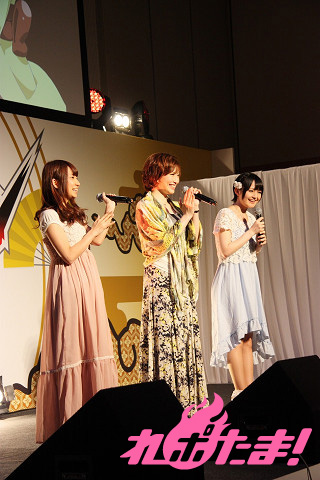 そのアニメ版でED曲を歌う3人組のユニット・Sweetyがオープニングライブに登場。Sweetyはボーカロイド・プロデューサーとして知られるOSTER projectがプロデュースする女性声優ユニットで、メンバーは長谷川唯、竹之内彩、高木友梨香の3人。5/30にリリースするED曲「UNLUCKY GIRL!!」をパフォーマンスして観客を盛り上げた。