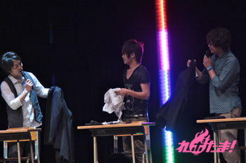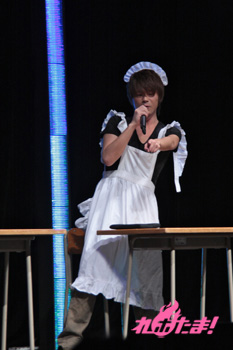 なお、クイズに臨む正装ということで、机の中には制服が入っており、そんな中、松岡さんの机にはメイドのエプロンが。そして頭のフリフリを何故か野島さんが装着することに(笑)。