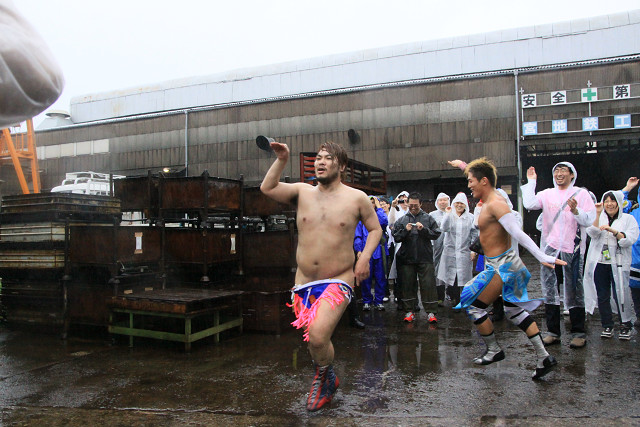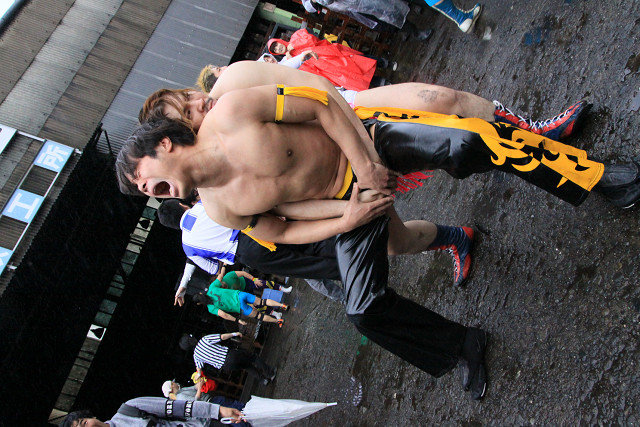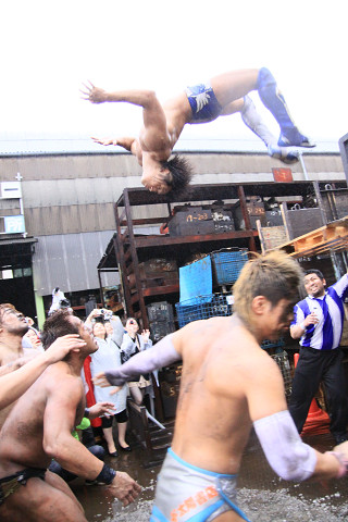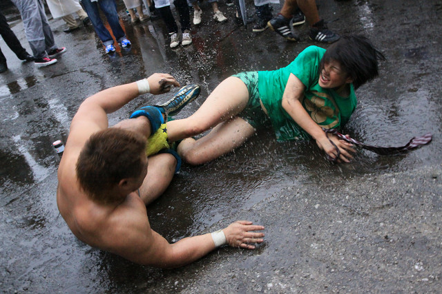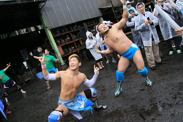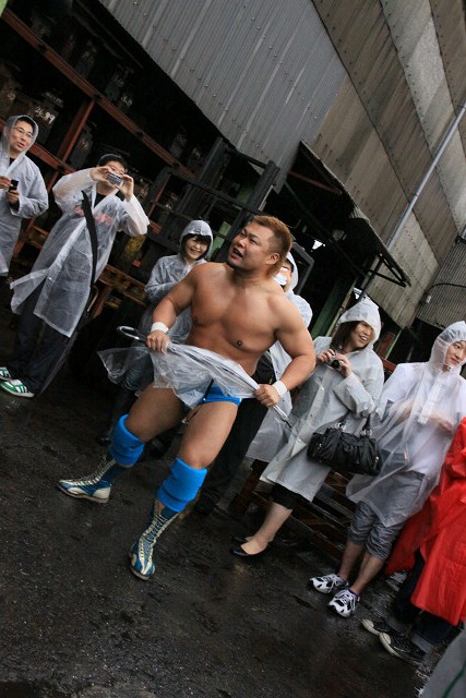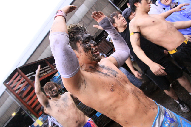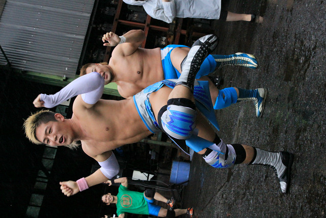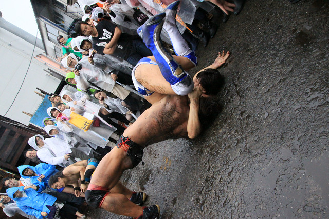 また、今回はあいにくの雨で地面はドロドロだったが、路上プロレスにおいては、それもプラスだったのかも。