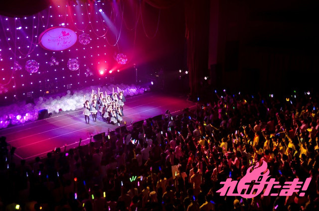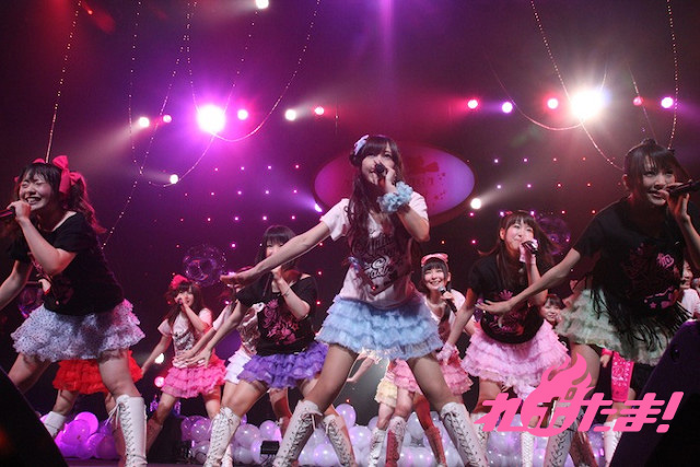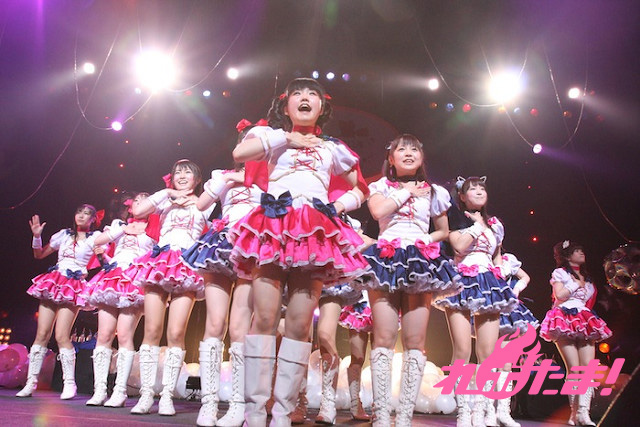 恒例の、メンバー一人ひとりの個性的な挨拶を挟んだ後は、「恋をゲームにしないで」「La*La*Laラボリューション」とキュートさ全開の曲で観客を酔わせていく。そこにアップテンポな「ニーハイ・エゴイスト」「聖ナルwktkノ星」と2曲連続で叩き込み、会場は一気に熱狂の渦に巻き込まれた。