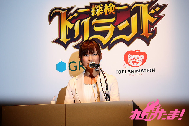 発表会はテレビ東京の繁田美貴アナウンサーが司会で進行していくことに。まずはテレビアニメの原作である人気ソーシャルゲーム『探検ドリランド』を運営する「GREE」やアニメ制作を担当する東映アニメーションなどの関係者が挨拶。