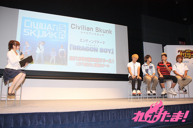 発表会のトリとして登場したのはEDテーマである「DRAGON BOY」を歌う4人組ロックバンド『Civilian Skunk』。