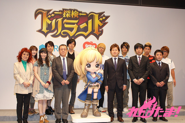 グリーが運営している大人気ソーシャルゲーム『探検ドリランド』がTVアニメ化されることが決定。7月7日よりテレビ東京系にて毎週土曜よる11時30より放送されることになり、その記者発表会が6月28日(木)に東京国際フォーラムで開催された。
