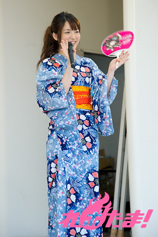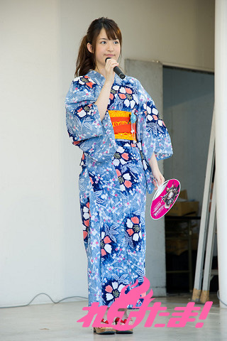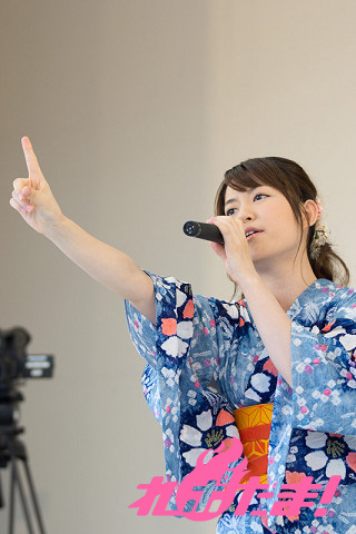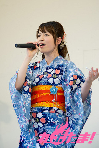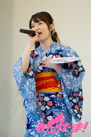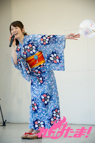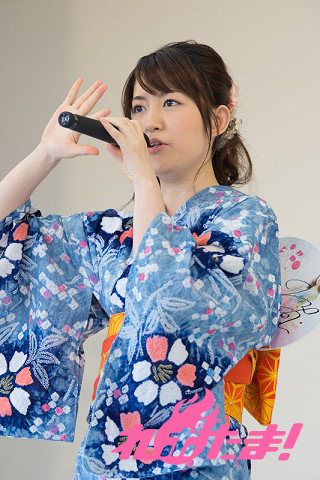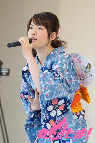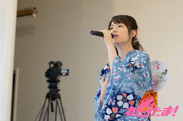 「さあ、七夕イベントの時間だ~!」と元気よく浴衣姿でステージに現れた小松さん。2万枚を突破したデビュー・シングルで アニメ『モーレツ宇宙海賊』のイメージソング 『Black Holy』を1曲目に披露。ファンから大きな声援が飛び、その盛り上がりを「今までに一番盛り上がった『Black Holy』でした」と笑顔を見せた。