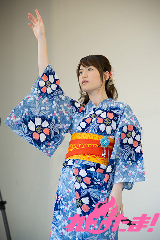 3曲めはクールダウンするかのように『モーレツ宇宙海賊』最終話のゲストエンディング曲『未来航路』をゆったりと歌い上げると「ちょっとウルっときちゃった」とコメント。ここで今回着ている浴衣についても触れられ「実は母親の浴衣なんです」と話すと会場からは「可愛いよ」「似合ってる」と大きな声援が飛び「回って!」のリクエストに応える場面も。