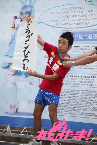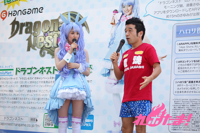広告に出演する、ハロリ役で初の声優にも挑戦している「モーニング娘。」でリーダーを務める道重さゆみを迎え、お披露目イベントが2012年7月9日(月)、新宿ステーションスクエアで開催された。