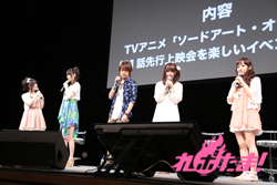 この日はキリト役の松岡禎丞さん、アスナ役の戸松遥さん、リーファ役の竹達彩奈さん、シリカ役の日高里菜さん、リズベット役の高垣彩陽さんもゲストに登場、トークを楽しんだ。