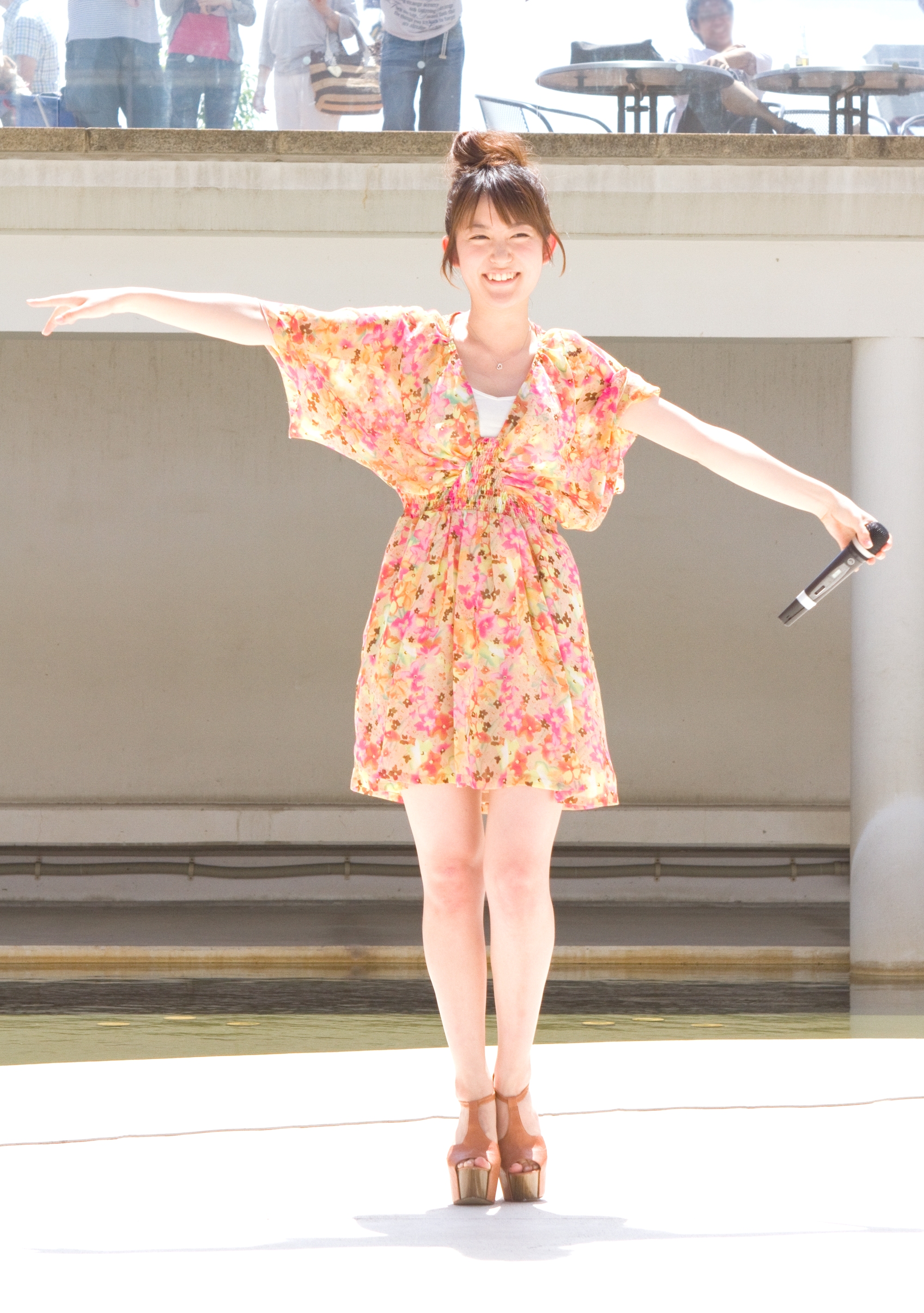 前日の大阪に続く発売記念イベントとなったこの日だが、祝日昼過ぎのららぽーと豊洲 野外メインステージは強烈な日差しの照り付ける晴天に恵まれた。会場には大勢のファンが駆けつけた他、フリースペースでのイベントになるため多くの買い物客が足を止め、約1000人が集まった。色鮮やかな花柄のワンピース姿でステージに登場した彼女は「みんな暑さにヤラれないでね!」といたずらっぽく笑ったが、同会場でのイベントは初ということで、これまでに比べて規模が大きいことを喜んでいる様子だ。