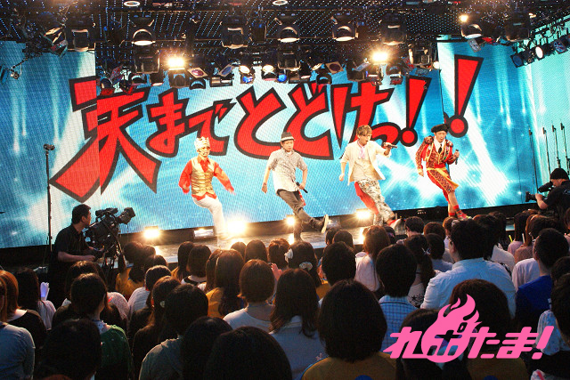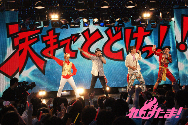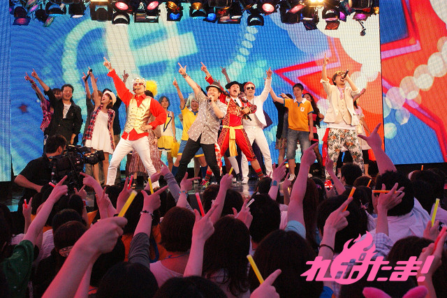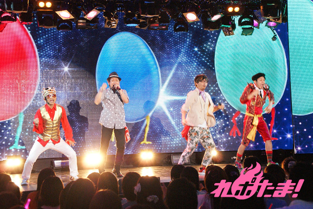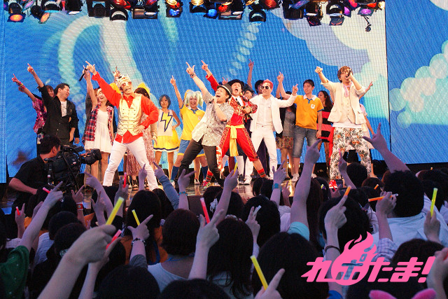 そしてラストは、「T-Pistonz+KMC」によるライブコーナーを展開し、「成せば成るのさ 七色卵」を大熱唱!「天までとどけっ!」では、こちらも観客のみんなとダンスレッスンをして、右手を天にかざす振り付けをキメ!更には、この日の出演者も全員ステージに上がり、大賑わい!観客達も大声援を送っていたぞ。