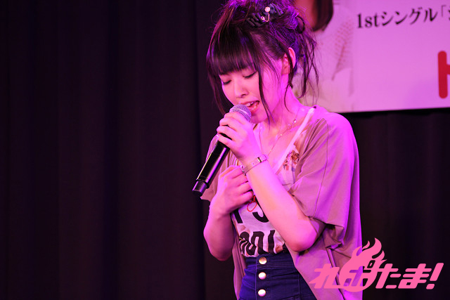 「『もう一度』をイベントで歌った時に、この曲はみんなの心に止まったんだな、自分が作りたかったのは間違ってなかったのかなって思った。みんなと自分の好きが共有できるか不安だったけど、共有してくれる人がいっぱいいるんだって気付いたお披露目だったので、その時ホッとしたのを覚えてます」と、語り、今後もいろんなタイプの作詞にチャレンジしていきたいと宣言したあと、お待ちかねのライブコーナーへ。