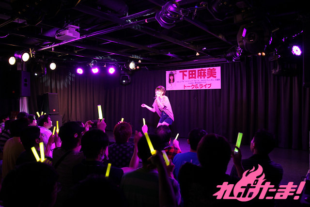 すっごく濃密だったんだけど、言葉にするとあっという間というのが、音楽(苦笑)。いろいろなことを感じ、想いを受け取ったライブパートのあとは、サイン入りポスターを懸けたジャンケン大会がスタート。5枚のポスターで、下田さんとの5番勝負! 各1人ずつしか生き残れないというサバイバルジャンケンだったが、ポスターを貰って涙するファンの女のコもいたりして、微笑ましかった。