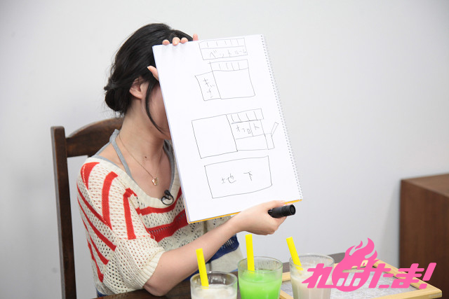伊藤さんの最近ハマっていることは「実際に住んでみたらどんな感じなんだろう? などと想像して楽しんでいます」という建物の間取り。ここで伊藤さんの理想の間取りをスケッチブックに書いてもらったところ、地上三階、地下室完備のとっても住みやすそうな(?)図面が完成(笑)! その快適さぶりをアピールする伊藤さんの微笑ましい姿が印象的でした。