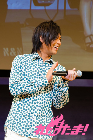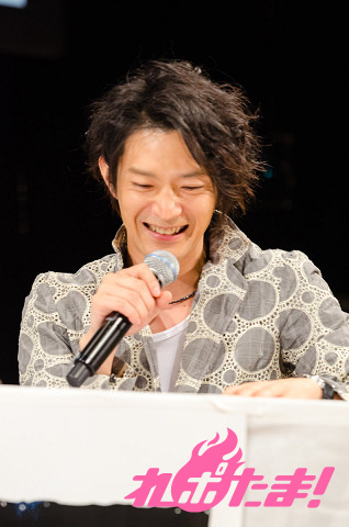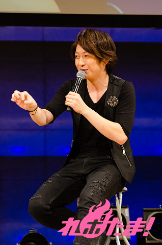 「浪川さんは現場で『抜刀』のまねごとをするんです」と告白。ちょっぴりいやらしい意味でとらえられたのか、会場のうちわも「黒」一色に(笑)。