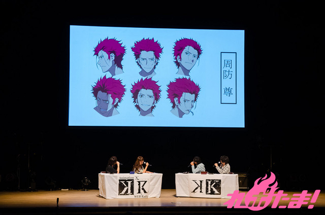 イベントには出演キャストを上映会に招き、お客様の目の前で作品やキャラクターの魅力について語って頂く他、アニメ制作スタッフを招いて様々な資料を元に『K』の魅力を紹介します。