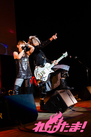 この後、有名コスプレイヤーのKANAME☆さんと清祇さんが登場し、キメポーズをすると場内から大歓声が上がった。