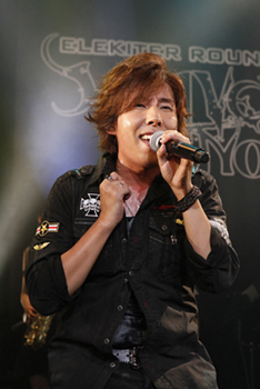 ステージから去った日野さんに代わって登場したのは立花さん。アコースティックギターの調べに合わせて伸びやかに『少女と箱の唄』を歌い上げると、柔らかいムードに染まった会場に向かって「これからもっともっと熱くするよ!」と叫ぶ。次のナンバーについて「“仮面”というキーワードが日野くんの曲と同じ。ふたりの心が通じ合った」と紹介すると、新曲の『Loveless Diva』を熱唱。これまでの曲調と打って変わった激しいサウンドで、会場の温度は一気にヒートアップする。