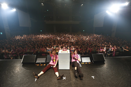 中身をチェックした日野さんは「植物生まれの……育毛美容液」とパッケージに書かれた文章読み上げ、「すっごい嬉しい!」と満面の笑顔。その笑顔を確認すると、立花さんは「アンコールしてもらって、歌を歌ってないのに終われない!」と会場に向かって叫び、アンコール曲の『キセキ』と『0の地平から』を熱唱。コール&レスポンスで会場全体が一体と化し、ボルテージは最高潮! 気づけばあっという間に2時間という時が流れていた。15曲を歌い切った彼らの表情は清々しく、汗でキラキラと光っている。「ありがとうございました!」とふたりは会場に大きく手を振り、ステージを去っていった。
