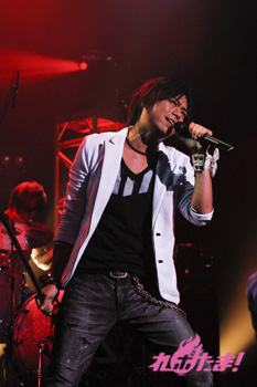 紗幕が落とされ、ムービーとは違い白のジャケットを羽織って登場した浪川が1曲目に披露したのは「ROCK STAR」。マイクスタンドで風を浴びながらワイルドに歌う姿に、オープニングから会場のボルテージを上げていく。
