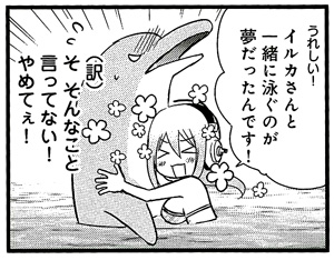 そに子:イルカのカエダマさんと出会って、背中に乗せていただくエピソードでしょうか♪