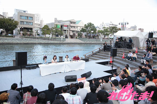 2012年10月6日(土)から琉球朝日放送でオンエアが始まった『はいたい七葉』のトークショーが7日(日)、新町橋東公園のステージで開催された。