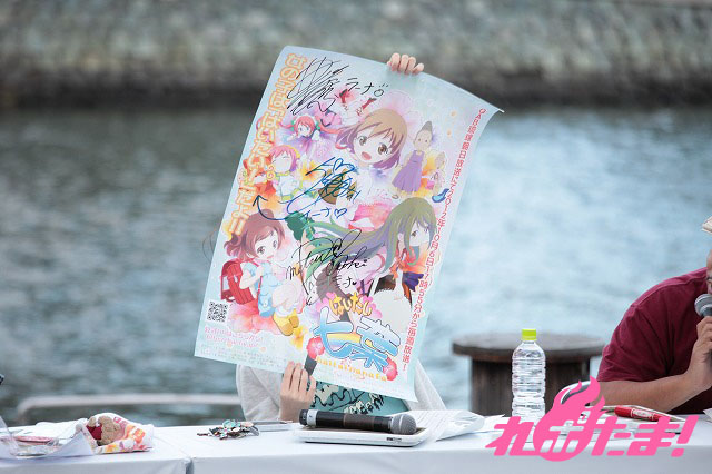 ニーナ役の松嵜麗(まつざき れい)、ラーナ役の井ノ上奈々(いのうえ なな)、イーナ役の五十嵐裕美(いがらし ひろみ)、そしてひらさわひさよしプロデューサーが登壇。番組についての紹介を行った。