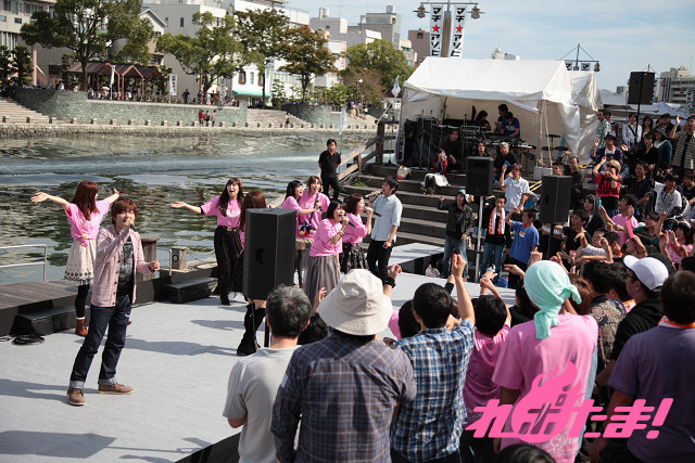 今回のマチ★アソビでデビューした、マウスプロモーション所属の歌姫ユニット「マウスディーバ」と、すっかりマチ★アソビの顔となったつきねこのライブが2012年10月8日(月・祝)に新町橋東公園で行われた。