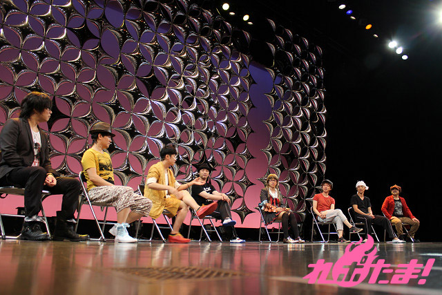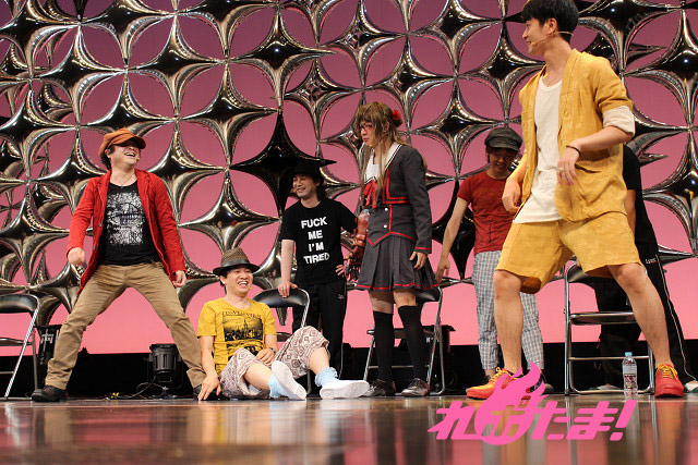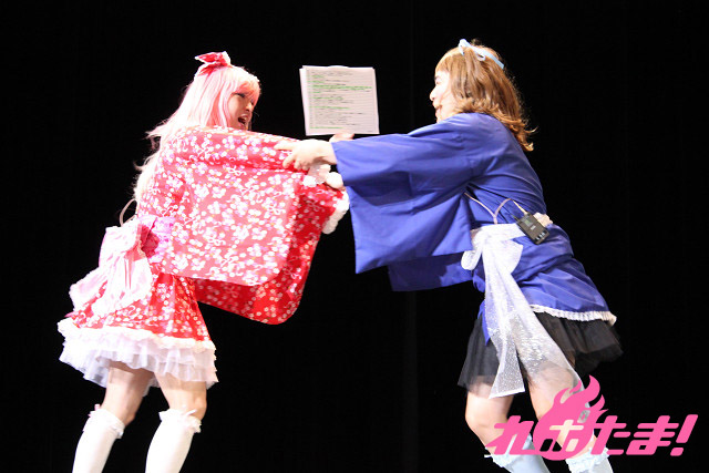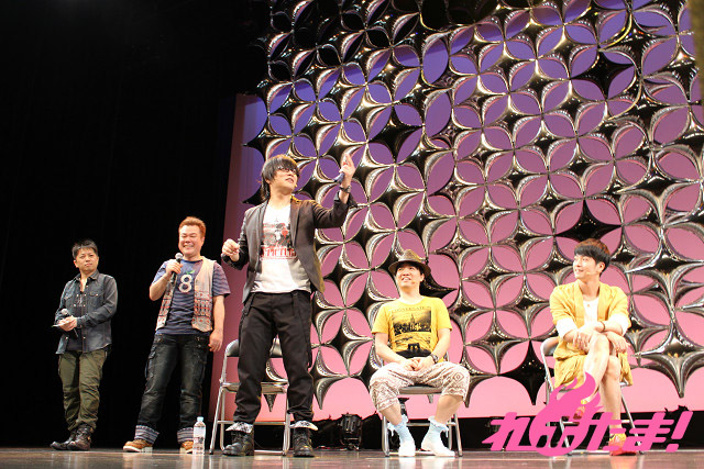 出演者全員そろってのしゃべり場のコーナーでは、水島さんが子供のころに遊んでいたという「じゃんけん相撲」を実際やってみることに。じゃんけんをして相手の陣地に入り込み相撲で相手を倒していくというルール。最初は恐る恐るやっていたみなさんでしたが最終的には本気になっていました。女装をした杉田さんはかなりのハンデ。最後は檜山さんと福山さんの一騎打ち! ガチ対決に会場は盛り上がりました。興奮冷めやらぬまま夜の部へ!