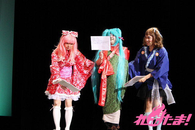 すると今回初登場の水島大宙さんと立花慎之介さんが女装をして2階席から登場!お客さんからは「可愛い!!」との声が沸き起こりました。