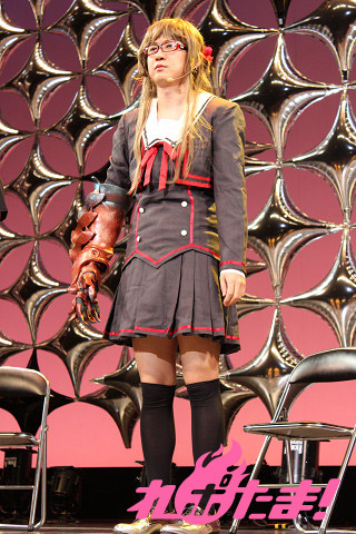 そんな魔法少女の二人にのぶこから「ステージまでお連れしなさい。」との命令が!そして舞台袖から現れた檜山さん。なんと某ボーカロイド風な格好した「ツインテールのぶこ」に扮した檜山さんは体中がぐるぐる巻きになってひとりで歩けません(笑)。ツインテールのぶこが登場したことによって「超・銀タマ生命体」は合体!という名の恒例ステージ上の早替えが始まりました。