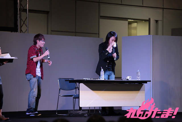 敗者の豊永さんは、罰ゲームとして危険な飲み物を飲むことに。「一気!」コールで飲んだものの、あまりの味に一度舞台そでに引っ込んでしまう、という状況に(笑)。この後、男気を見せて諏訪部さんもドリンクに挑戦したが、結果は撃沈(笑)。