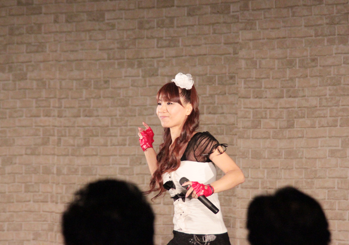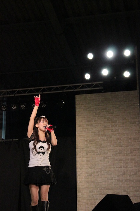 彩音は、アニメ主題歌から「11eyes」主題歌「Arrival of Tears」、「W 〜ウィッシュ〜」主題歌「KIZUNA~絆」、ゲーム「Memories Off #5 とぎれたフィルム」主題歌「ORANGE」、「ひぐらしのなく頃に祭 〜澪尽し編〜」主題歌「コンプレックス・イマージュ」、更に、アーケードゲーム「太鼓の達人」収録楽曲の「Red Rose Evangel」を熱唱して会場に集まったファンを盛り上げた。