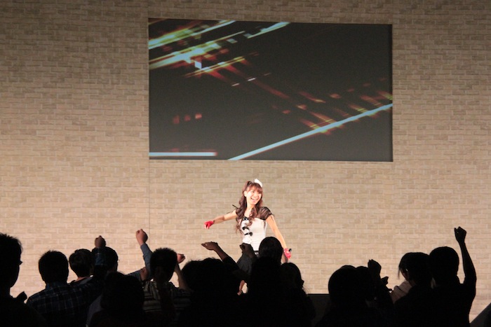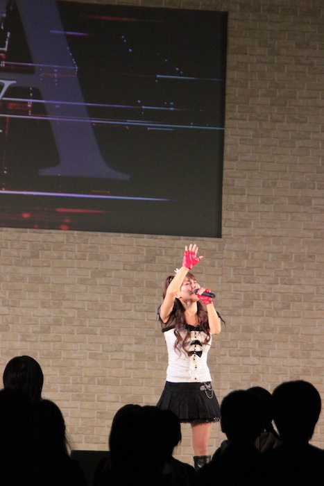 いとうかなこが、アニメ「シュタインズ・ゲート」主題歌「Hacking to the Gate」「スカイクラッドの観測者」、ゲーム版「ロボティクス・ノーツ」エンディングテーマ「空の下の相関図」、ゲーム「ギルティクラウン ロストクリスマス」挿入歌「ISOLATION」を披露した他、ここで初の生披露となったPS3用ゲーム『カオスヘッド ノア』新オープニングテーマ「カオスロジック」を熱唱!
