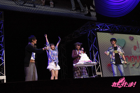 さらに、サプライズで誕生日の近い豊崎さん、高垣さん、岡本信彦さん、鷲崎健さんへのバースデーケーキが贈られ、会場は祝福ムードに包まれた。