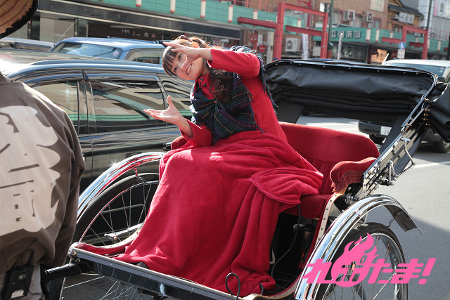 続いては浅草名物・人力車体験! 「浅草園芸ホール」や「花やしき」といった、浅草のスポットを、人力車を引っ張る俥夫の小粋なトークを楽しみながら巡っていく。