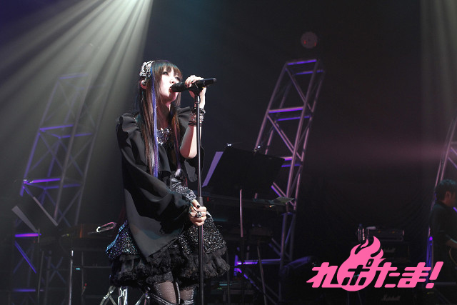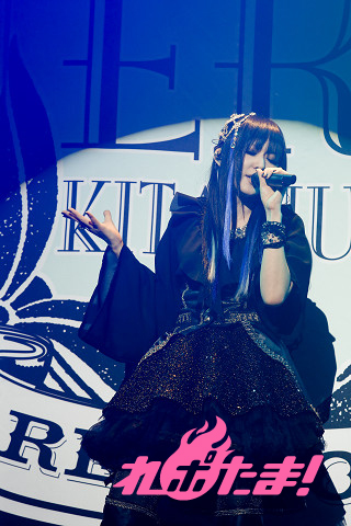 「re;story」のイントロが流れ出し大歓声が上がる中で、ステージの上段から、黒いドレスに身を包んだキタエリが登場。